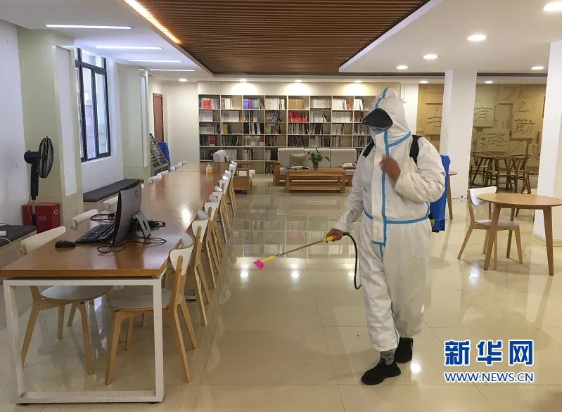 福州第四中学校园消杀。新华网发(福州市教育局供图)