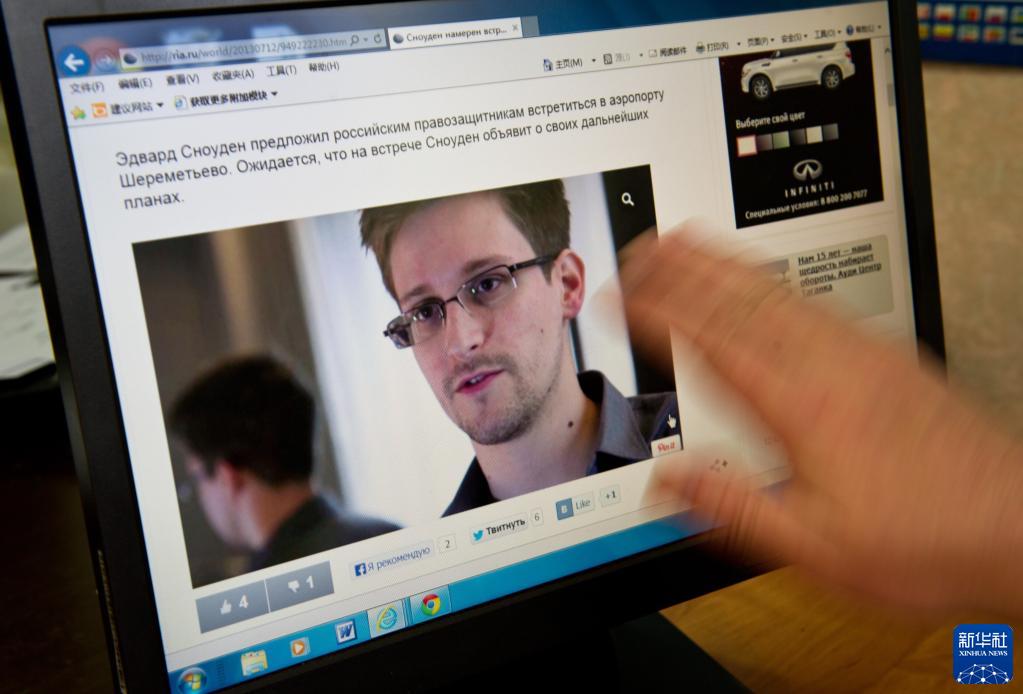 2013年7月12日,新闻工作者在俄罗斯首都莫斯科打开网页浏览斯诺登的讯息。2013年,美国前防务承包商雇员爱德华·斯诺登向媒体曝光美方“棱镜”大规模秘密监听项目,监听对象包括德国总理默克尔等多国政要。新华社记者姜克红摄