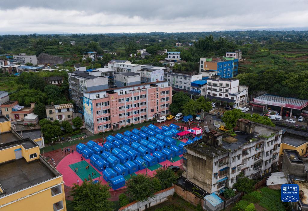 俯瞰泸县福集镇一受灾群众安置点(9月16日摄,无人机照片)。