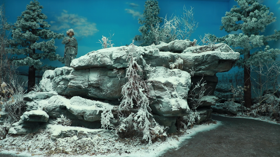 五大连池市博物馆内对东北抗联密营的场景复原(8月23日摄)。新华社记者何山摄