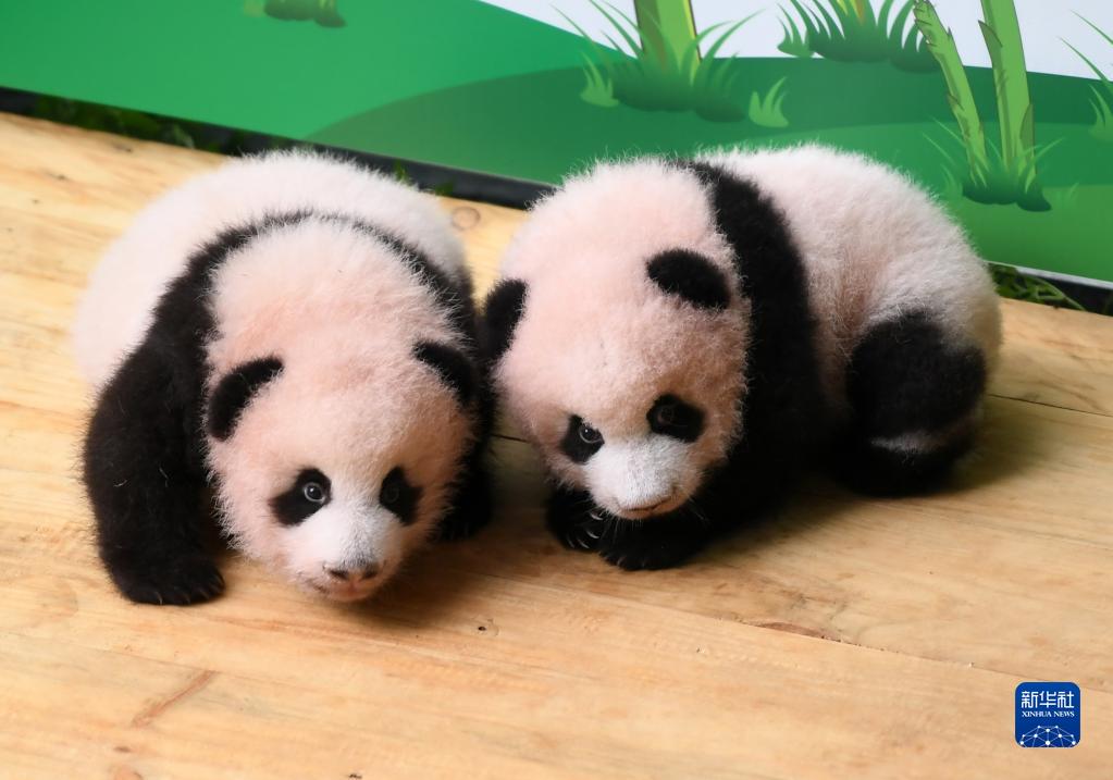 9月17日,大熊猫双胞胎在满百天征名活动上。