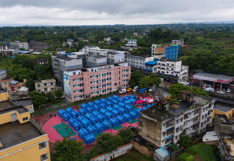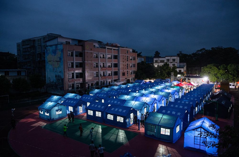 ↑ 9月16日拍摄的泸县福集镇一受灾群众安置点。