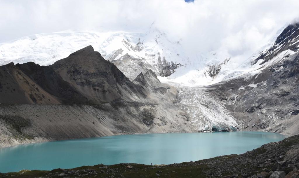西藏日喀则市亚东县境内,超过海拔5000米的冰川下有一个湖泊——朗错。通过分析坝体形态特征,科考队初步分析判断这是一个冰川终碛体形成的堰塞湖,即冰湖。冰湖是喜马拉雅山脉常见的堰塞湖类型之一。