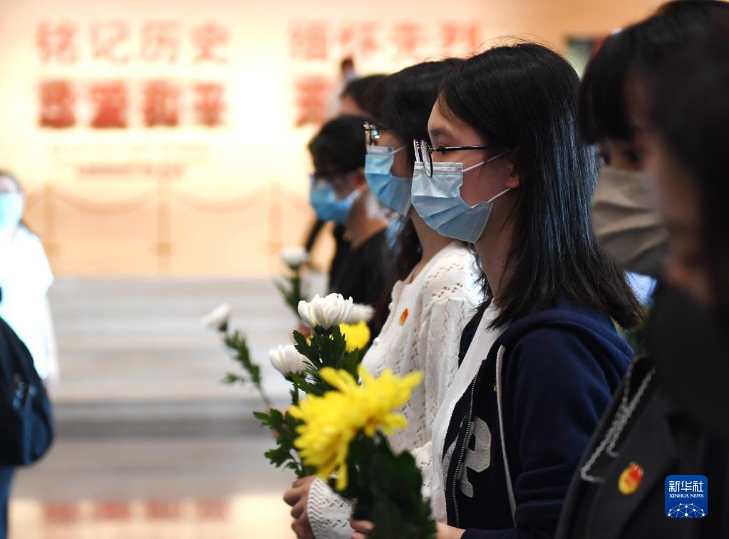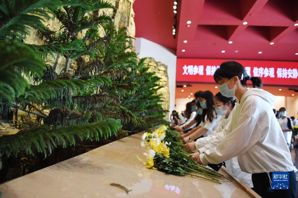9月18日,各界群众来到中国人民抗日战争纪念馆向抗战英烈献花。新华社记者 张晨霖 摄