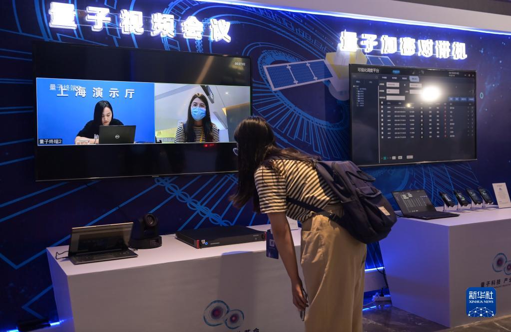 9月18日,参会人员在2021量子产业大会上体验量子视频会议。