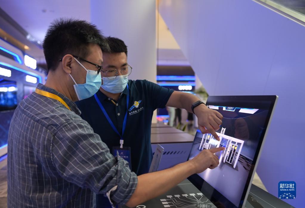 9月18日,参会人员在2021量子产业大会上使用量子计算虚拟实验室体验量子计算。