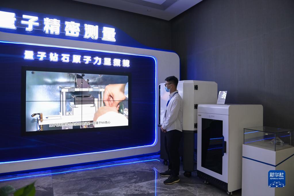 在2021量子产业大会上拍摄的量子钻石原子力显微镜展台(9月18日摄)。