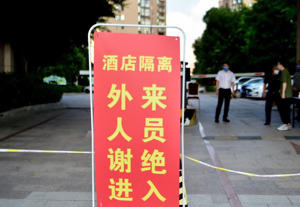 这是一家隔离酒店外的警示标语。新华社记者魏培全摄