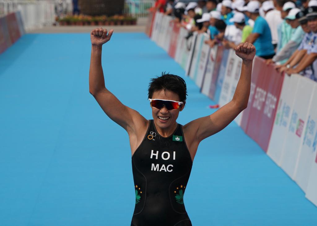 2018年8月31日,第18届亚运会女子铁人三项决赛,中国澳门选手许朗名列第三。新华社记者程敏摄