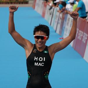2017年9月3日,澳门队选手许朗在第十三届全运会铁人三项女子个人决赛中获得第六名。新华社记者王毓国摄