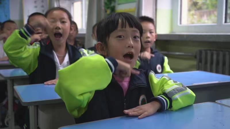 西北民族大学附属小学的孩子们唱刷牙歌的场景。(新华社记者郎兵兵 摄)