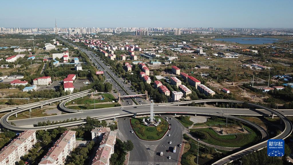 这是9月17日拍摄的大庆地标建筑“石油之光”和周边景象(无人机照片)。