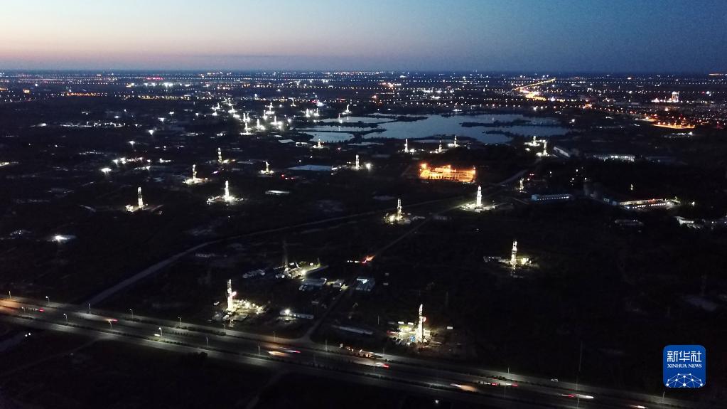 这是大庆油田一处钻井群(9月7日摄,无人机照片)。