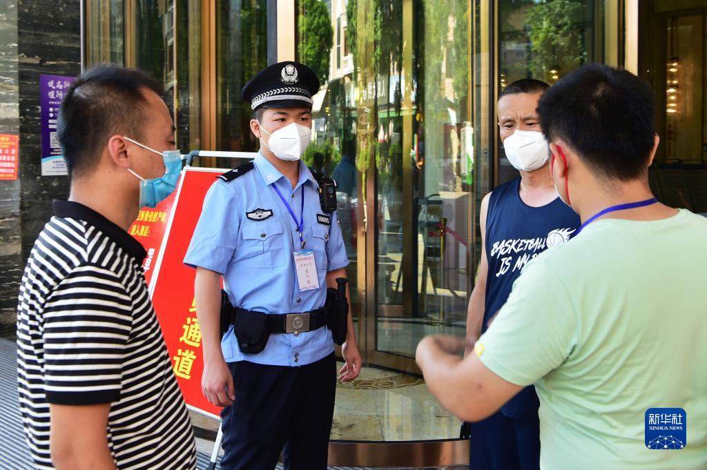 9月20日,仙游县榜头派出所民警倪泽寅(左二)在仙游的一家定点隔离酒店值守。新华社记者魏培全 摄