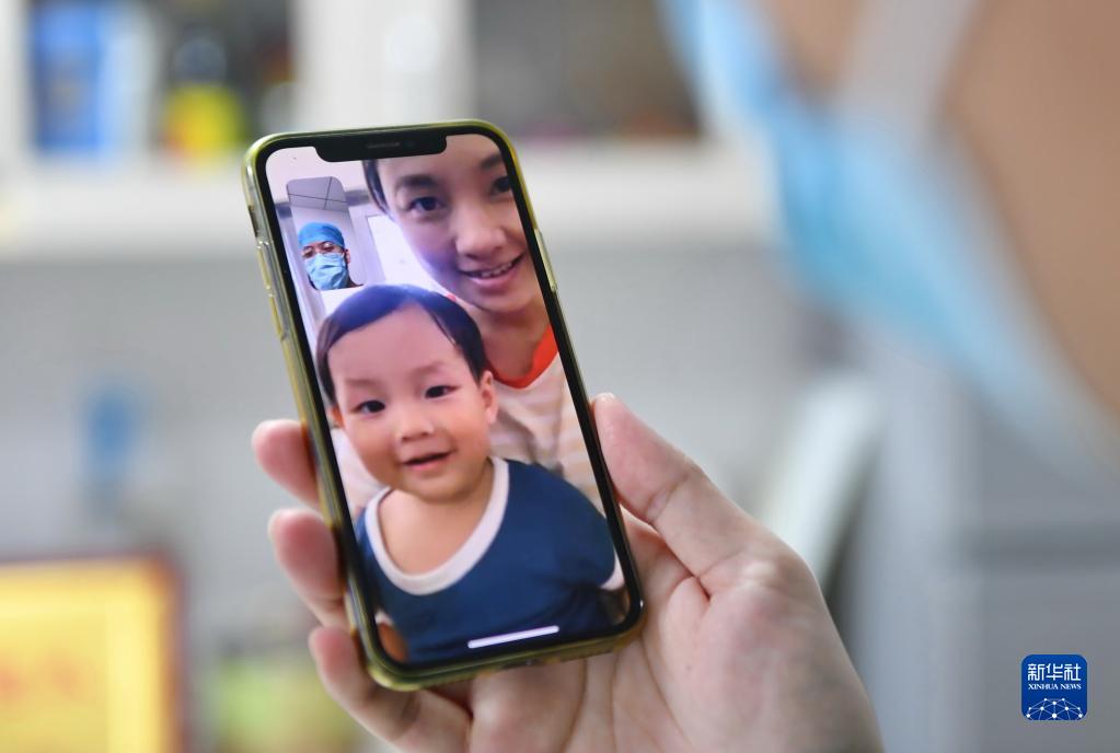 9月21日,吕一鸣在和远在广东潮州的妻子、小孩视频通话。新华社记者林善传 摄
