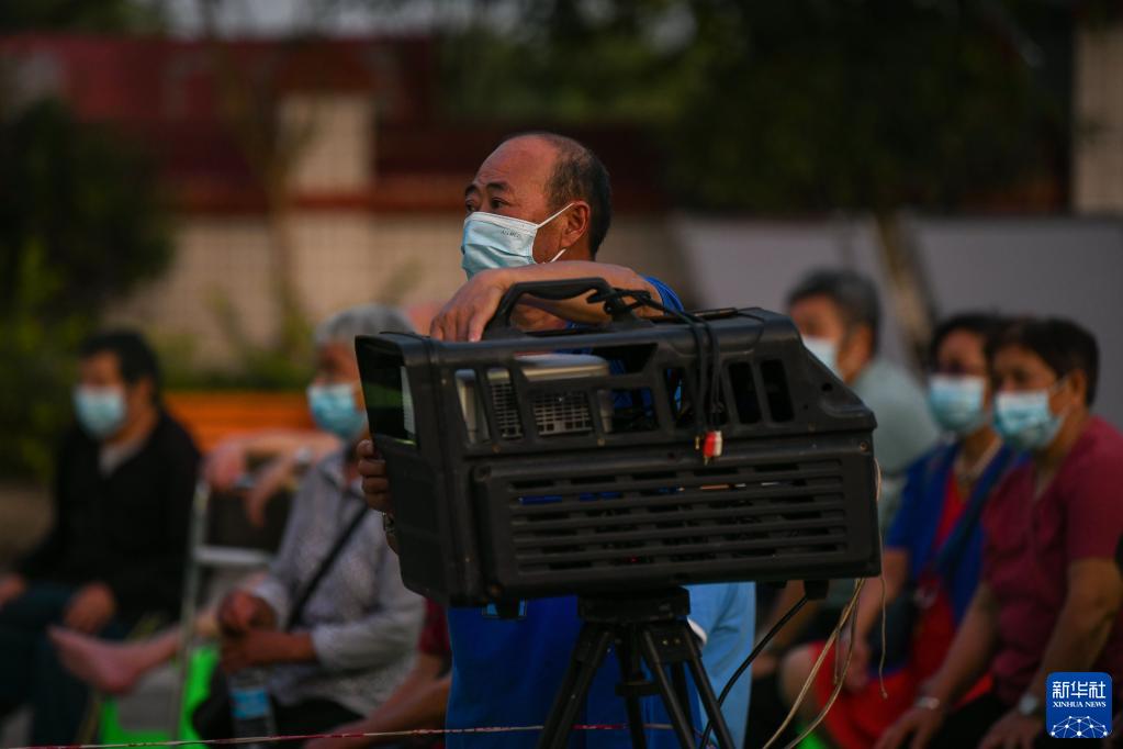 9月21日,在泸县福集镇敬老院,工作人员在调试流动电影放映机。
