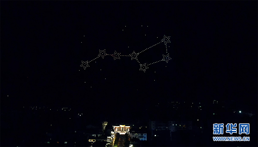 武当山系中国道教圣地,位于湖北十堰丹江口市,紧临南水北调中线源头丹江口水库。玉虚宫是武当山建筑群中最大的宫殿之一,始建于明永乐年间,规制谨严,院落重重。当晚无人机在8分钟持续表演中“星”光闪烁,给观众带来了一场精彩的视觉盛宴。(文字:连迅、赵梦琪;视频:张文静、杨伟)