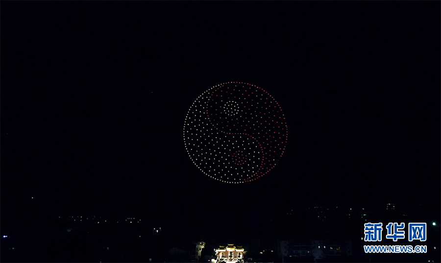 湖北十堰武当山景区举办无人机表演,迎接中秋佳节到来。新华网发 张文静摄