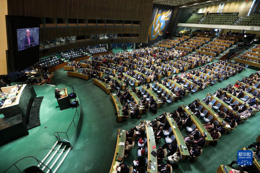 9月21日,在位于纽约的联合国总部,联合国秘书长古特雷斯在第76届联合国大会一般性辩论开幕式上致辞。新华社记者王迎摄