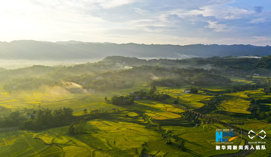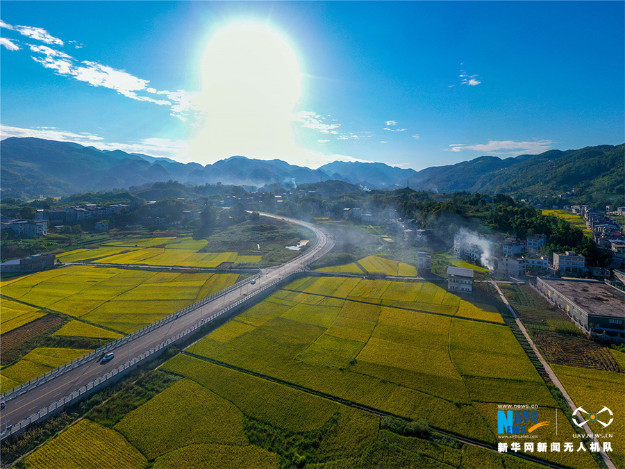 有“巫山米仓”之称的重庆市巫山县庙宇镇的稻谷成熟,尽显秋收之美。新华网发(汪长征 摄)
