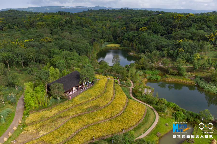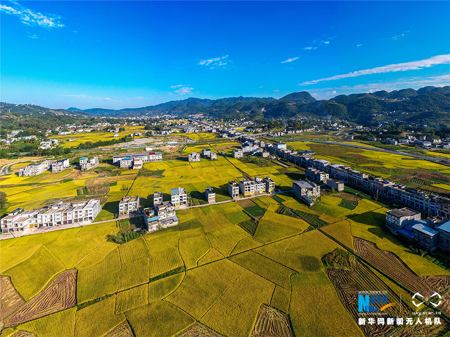 微风拂过,重庆梁平的稻海与秋阳交相辉映。新华网发(熊伟 摄)
