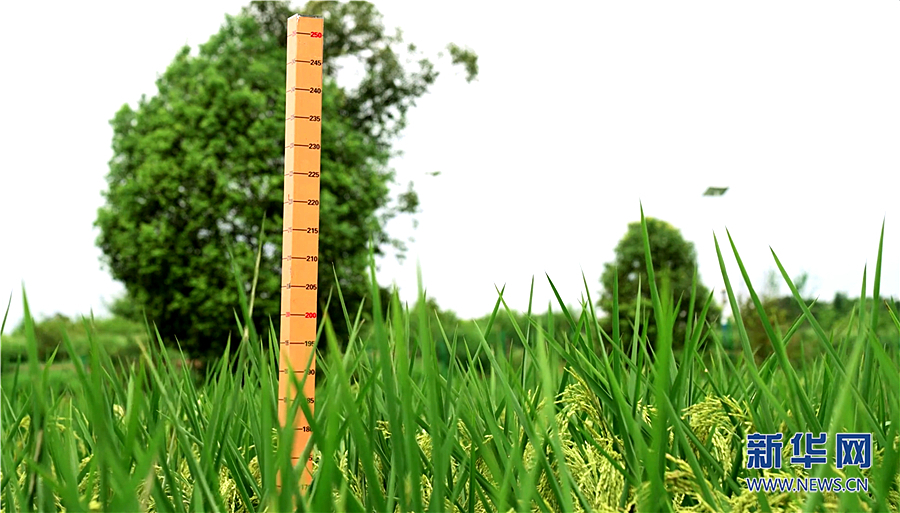 放眼望去,犹如高粱一般的稻株身形挺拔,穂长粒多,平均每蔸水稻植株高达2米。新华网发(曾庆川 摄)