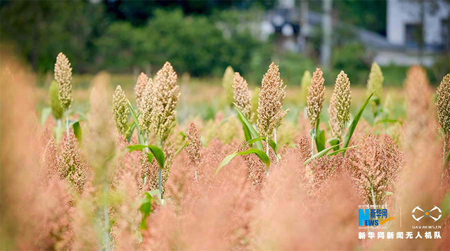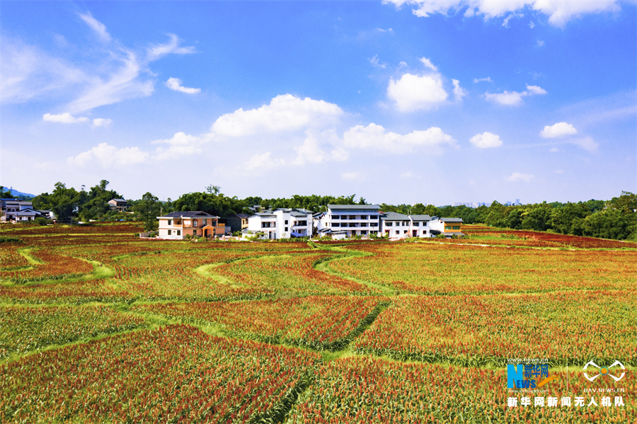 重庆市铜梁区田野里近万亩高粱陆续熟了。新华网发(李川 摄)