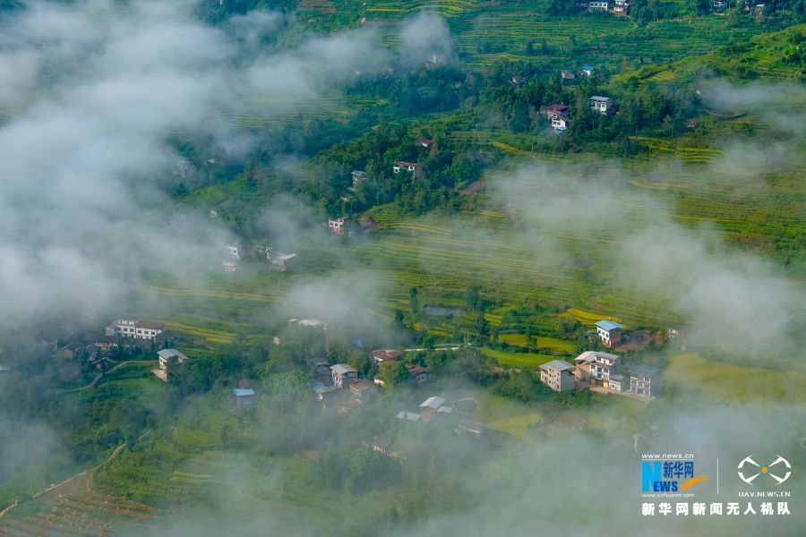 重庆市万州区太安镇,白云生处,田畴万亩。新华网发(侯本艳 摄)