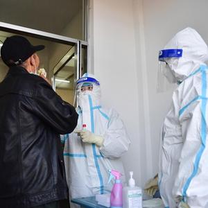 9月24日,在哈尔滨市巴彦县兴隆镇一处流动核酸检测点,医务人员为居民进行核酸检测取样。