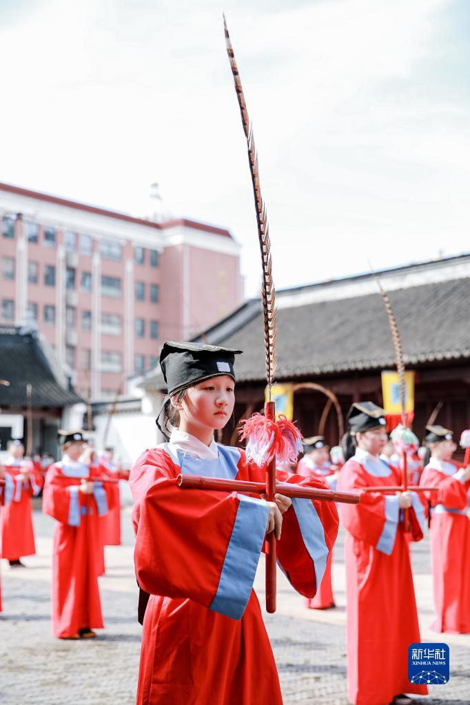 9月25日,上海学子以祭孔佾舞为活动开启序幕。新华社发