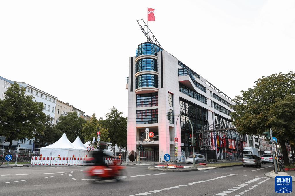 9月25日,车辆经过德国首都柏林的德国社会民主党(社民党)总部。