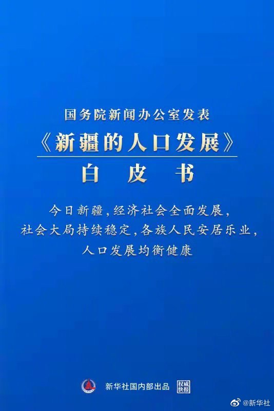 国务院新闻办公室26日发表《新疆的人口发展》白皮书。白皮书指出,2000多年来,新疆地区众多民族经过诞育、分化、交融,形成了“你中有我、我中有你”的和合共生关系和多元一体格局。今日新疆,经济社会全面发展,社会大局持续稳定,各族人民安居乐业,人口发展均衡健康。(记者王琦、高蕾、范思翔,海报设计杨轶群)