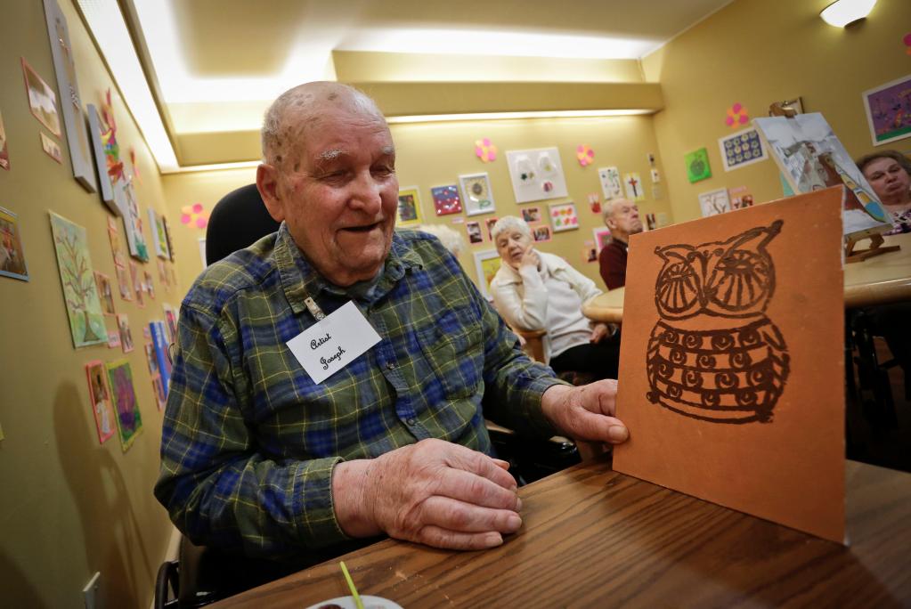 2015年9月2日, 在加拿大温哥华附近的新西敏市,患者在画廊中展示自己的画作。(新华社发)