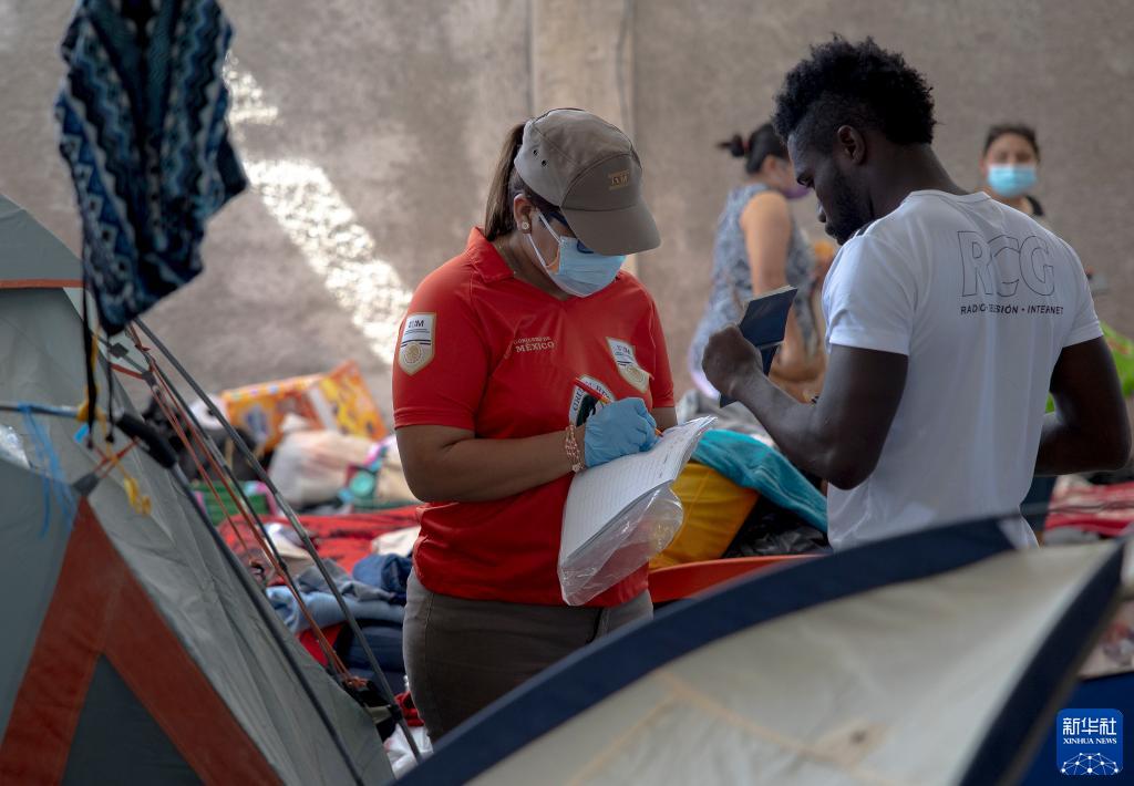 9月25日,墨西哥移民官员在墨西哥阿库尼亚城移民收容所记录一名海地移民的个人信息。