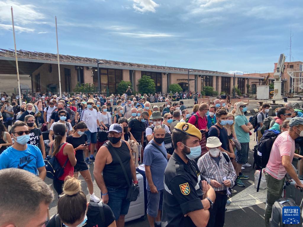 9月25日,大量民众在西班牙拉帕尔马岛港口等待离岛。新华社记者 孟鼎博 摄