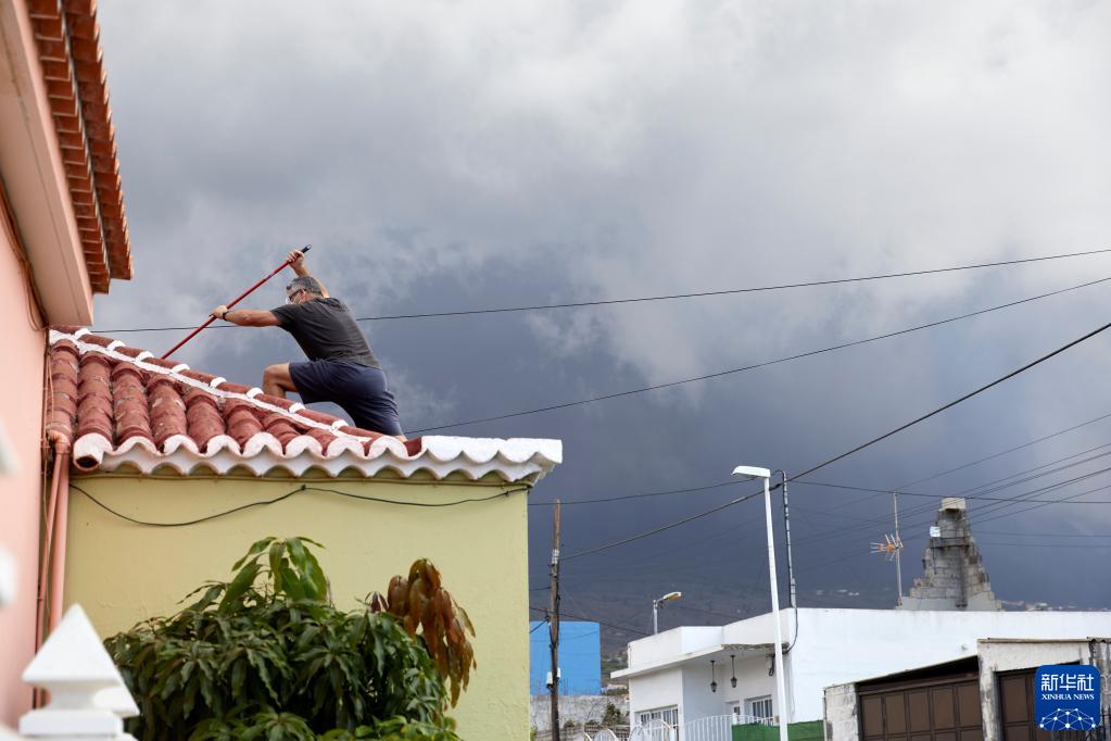 9月24日,一名居民在西班牙拉帕尔马岛清理火山灰。新华社记者 孟鼎博 摄