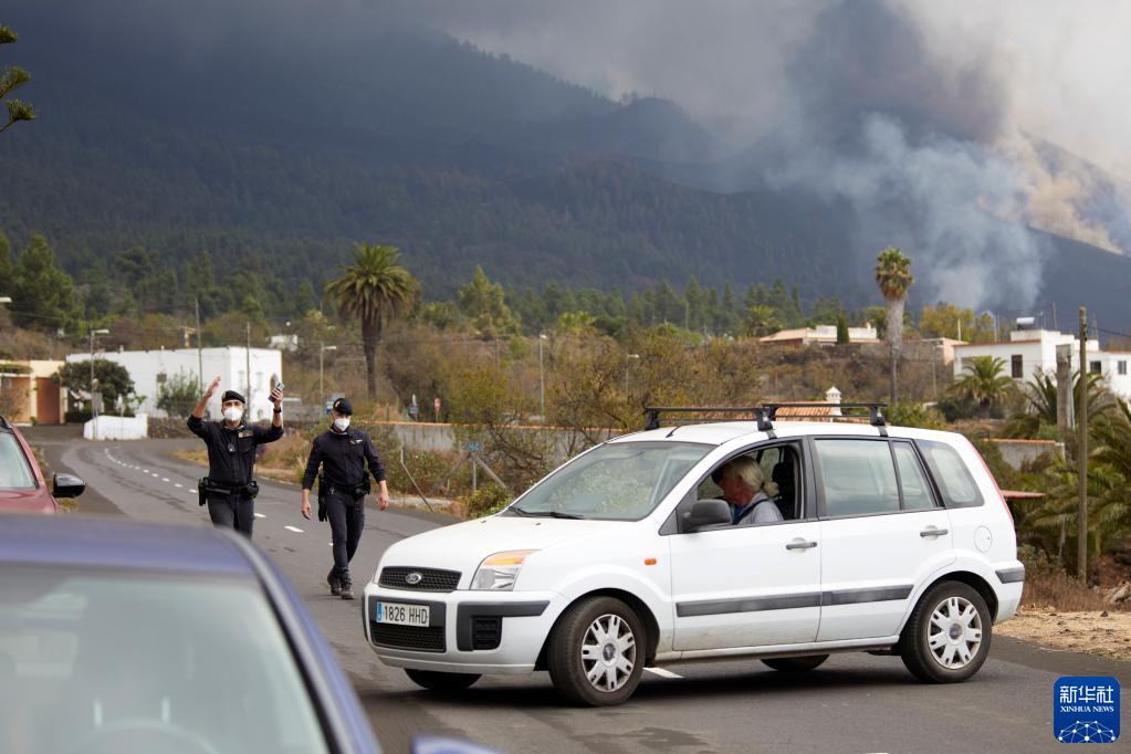 9月24日,警察在西班牙拉帕尔马岛老昆布雷火山附近封锁道路。新华社记者 孟鼎博 摄