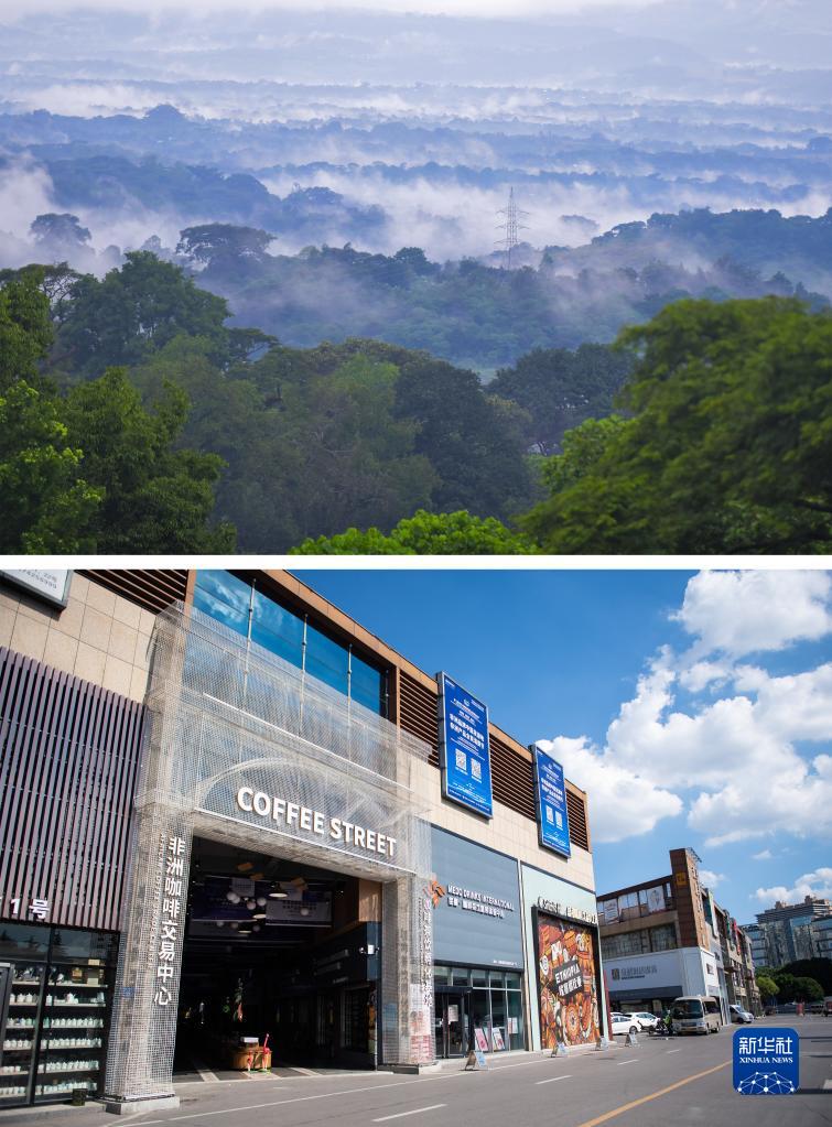 下图:这是9月24日在湖南省长沙市高桥大市场拍摄的非洲咖啡街(新华社记者陈思汗摄)。