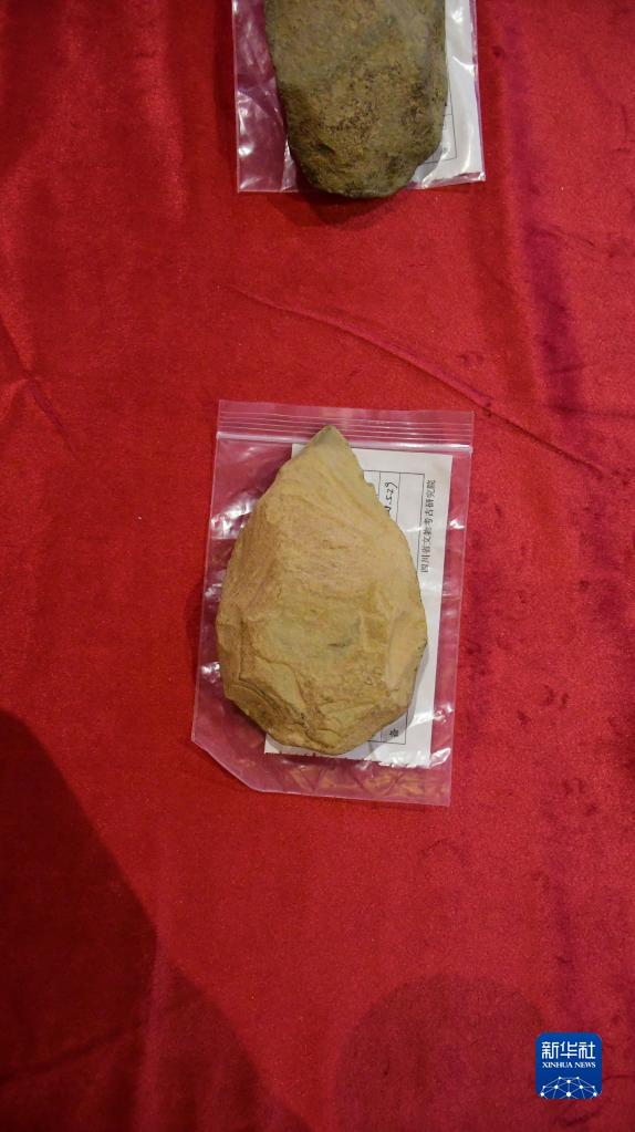 这是在四川稻城皮洛遗址发现的手斧(9月12日摄)。新华社记者 谢佼 摄