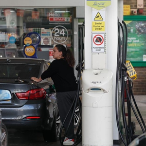 9月27日,车辆在英国伦敦一家加油站外排队加油。