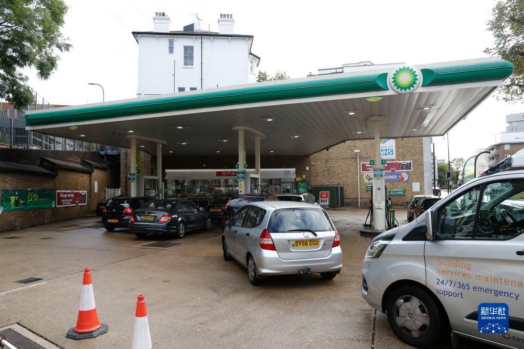 9月27日,车辆排队驶入英国伦敦一家加油站加油。新华社记者 韩岩 摄