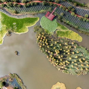 空中俯瞰昆明宝丰半岛湿地。 新华社记者 江文耀 摄