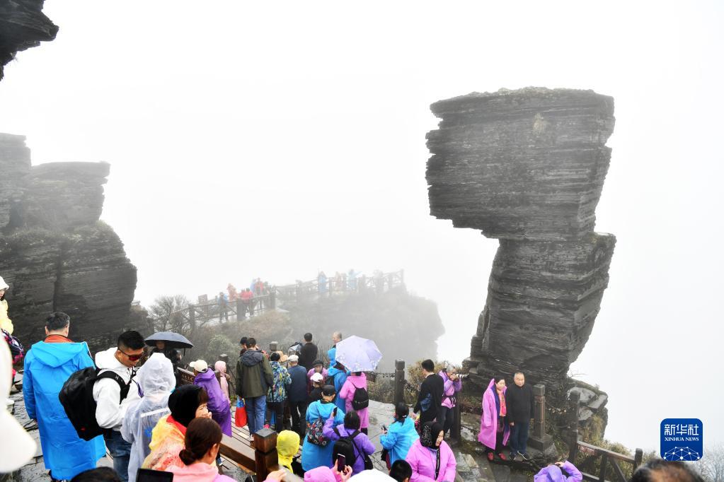 游客在贵州梵净山景区观光(4月10日摄)。新华社记者 杨文斌 摄