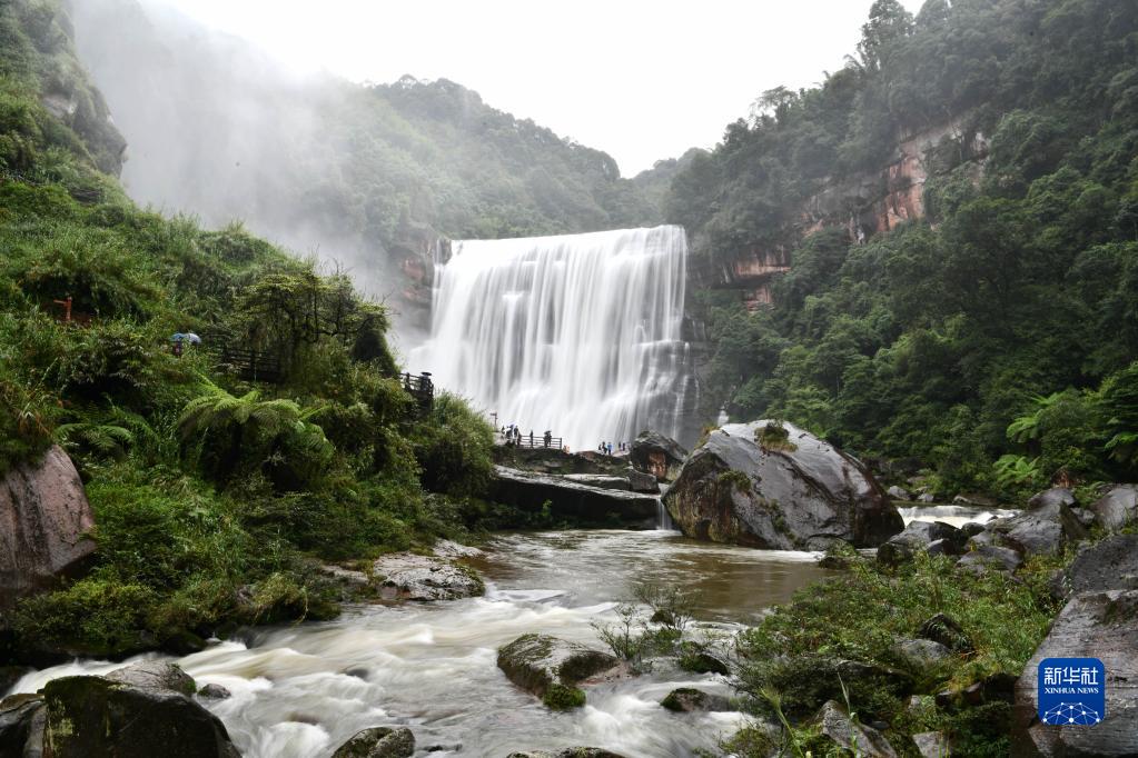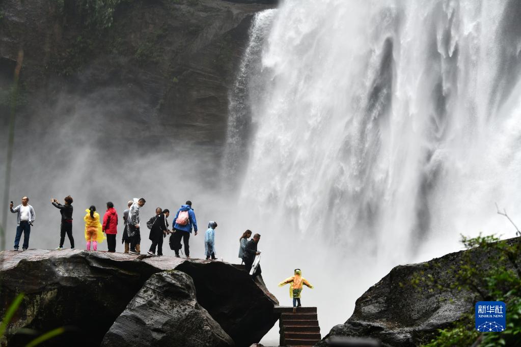 游客在贵州赤水大瀑布景区观光(2020年10月7日摄)。新华社记者 杨文斌 摄