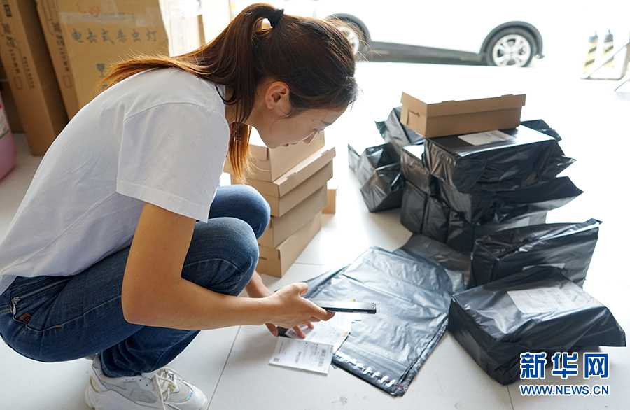 张祖玉邮寄客户订购的草鞋。新华网发 李勇摄