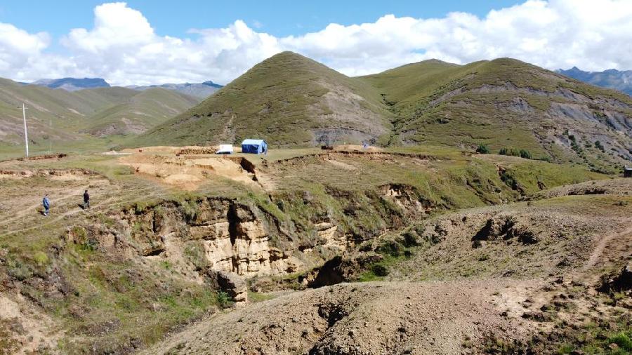 这是四川稻城皮洛遗址一个正在发掘的探坑(9月12日摄)。新华社记者 谢佼 摄