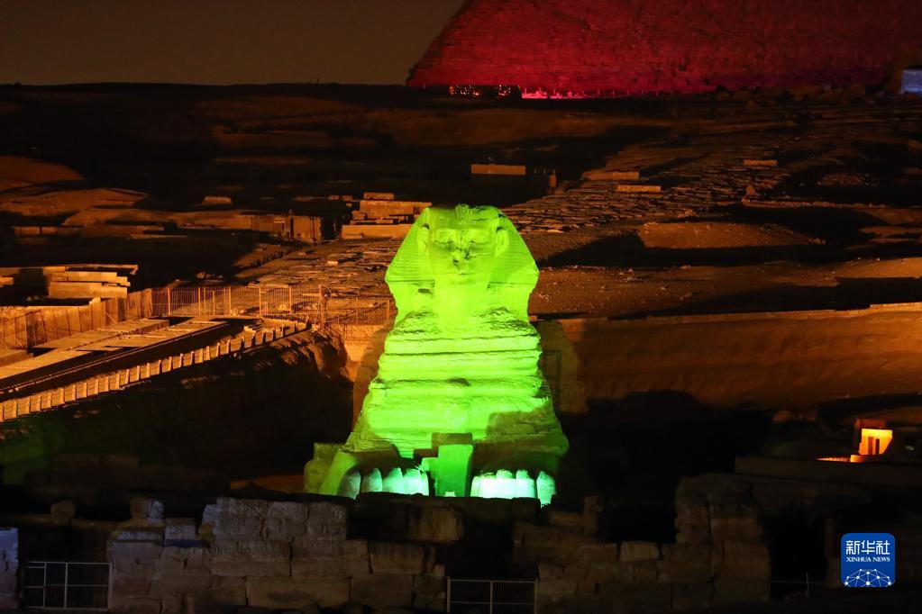 9月27日,埃及吉萨金字塔群景区为游客上演声光秀。