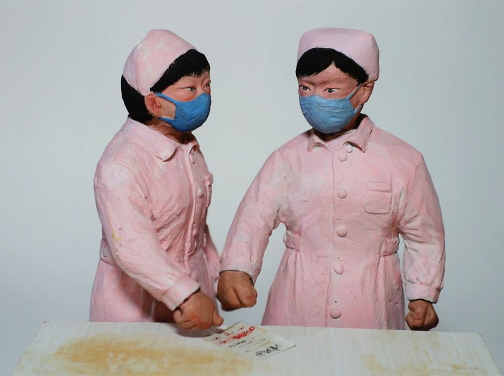 以抗击新冠肺炎疫情为主题的玉田泥塑作品《请战》。唐山市玉田县委宣传部供图