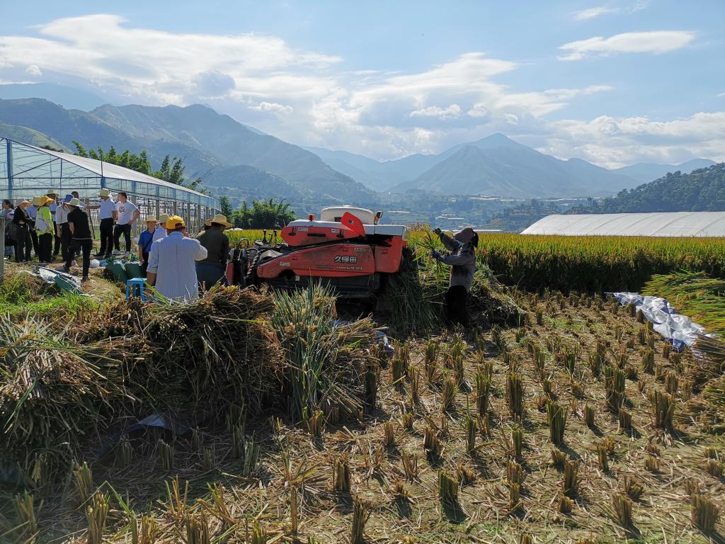 28日,由四川省农业农村厅组织来自中科院、四川农业大学、四川省农业科学院等单位的专家组成的测产组在试验田抽取了3块田块进行收割,最终测得亩产1085.99公斤。
