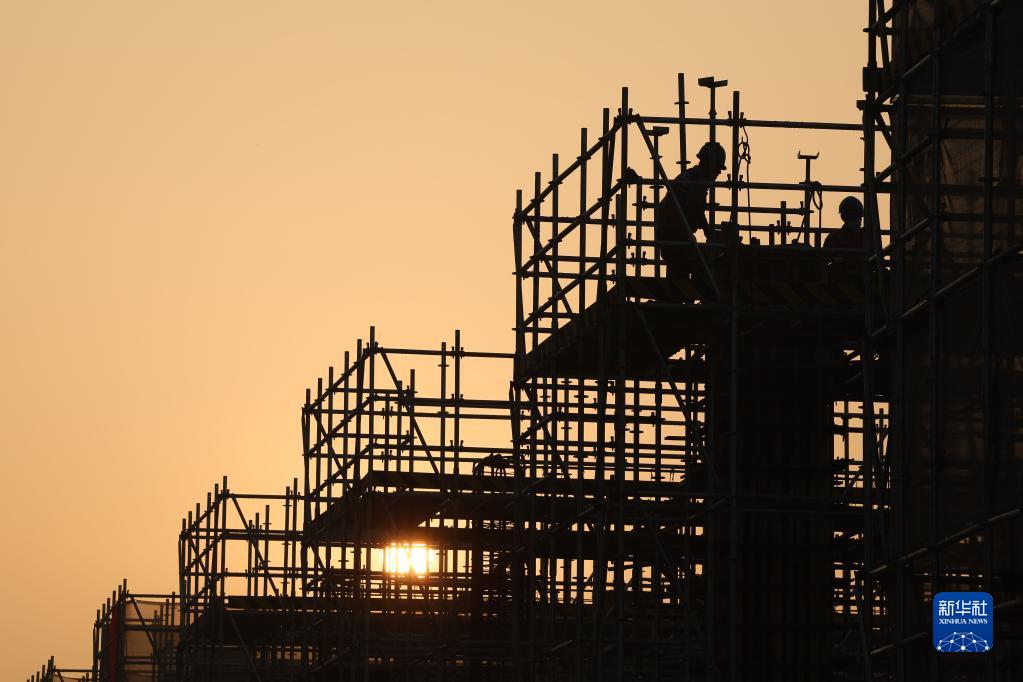 9月29日,工人在位于河北省高碑店市的雄东500千伏变电站工地施工。
